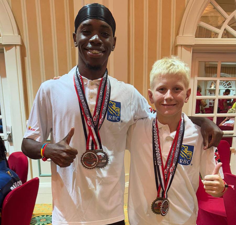 CONGRATULATIONS to Barron MUSGROVE, Jr. (left) - GOLD MEDAL for 20-21 Age Category for AQUATHLON and SILVER MEDAL for TRIATHLON and Lyall MENZIE (right) - GOLD MEDAL for 11-12 Age Category for both AQUATHLON and TRIATHLON in the recently concluded 2025 CARIFTA Aquathlon, Triathlon and Mixed Relay in Black Rock, Trinidad and Tobago.
